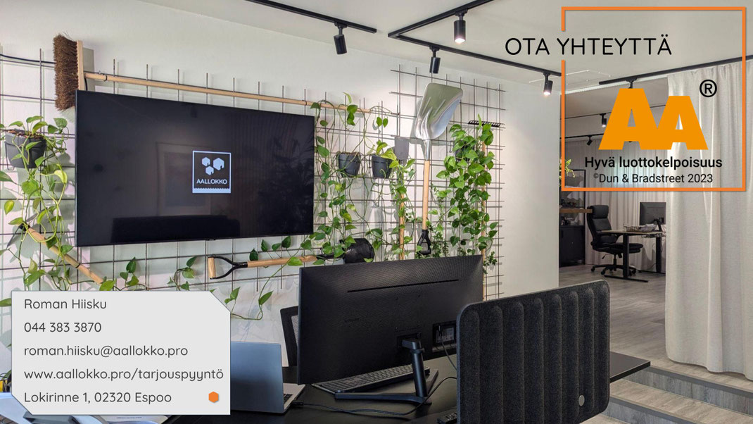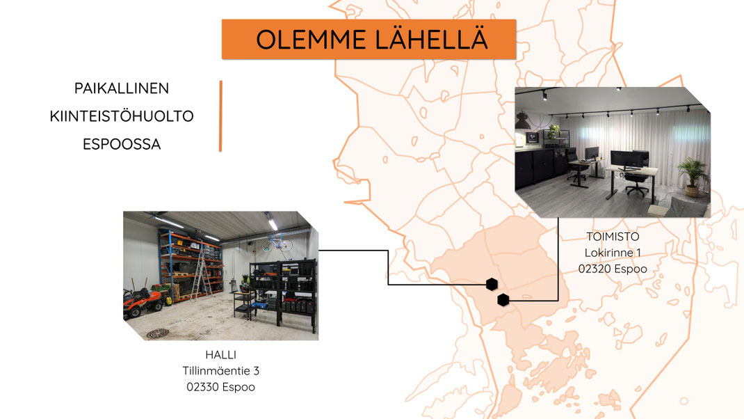 Paikallinen asiantuntija. Olemme erikoistuneet palvelemaan asiakkaitamme Suur- Espoonlahden alueella. Tämä antaa meille mahdollisuuden tarjota nopeaa ja ketterää palvelua.